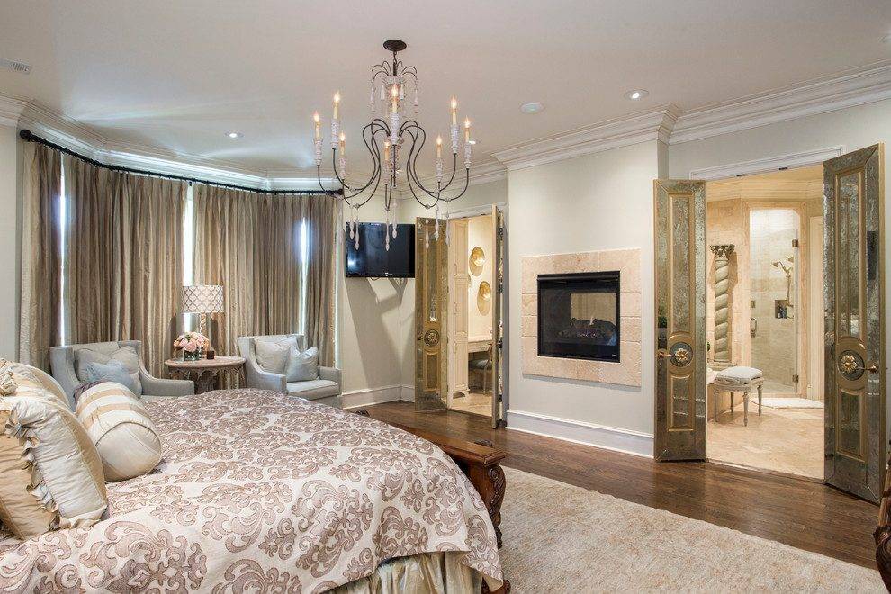 Стены в спальне, тщательно выровненные, отделывают декоративной штукатуркой (венецианская штукатурка, имитирующая мрамор, наследие мастеров эпохи Возрождения) керамикой или камнем. Изысканности помещению добавят участки стен, декорированные росписью. На одной из стен можно разместить барельефные колонны с портиком – элемент ампира будет весьма органичен в подобном интерьере.