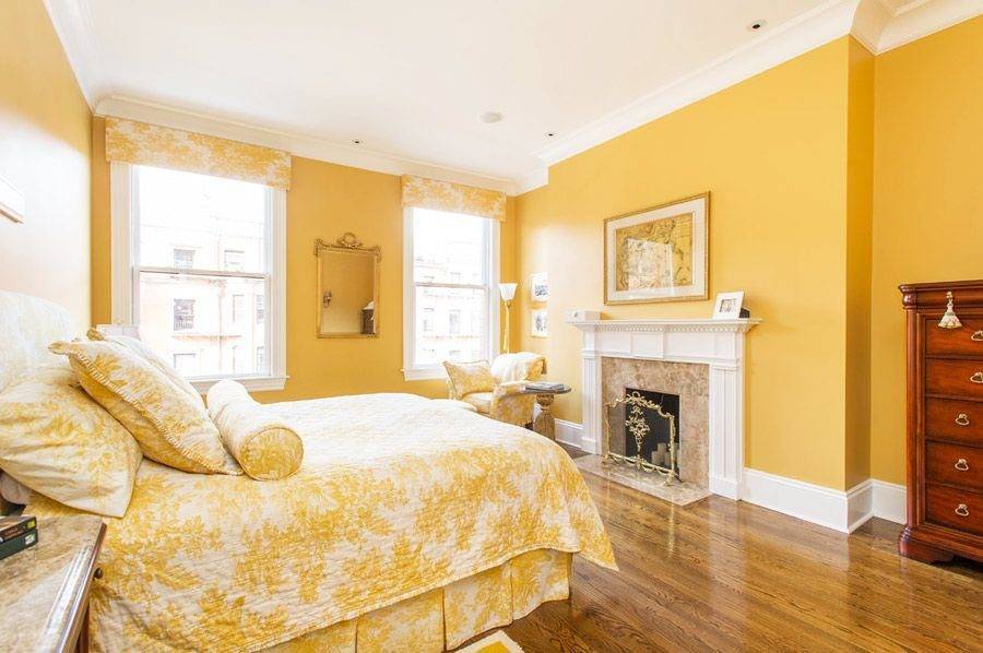 Факт! Если в узкой и длинной спальне выкрасить противоположные стены в желтый, а остальные (более длинные) сделать светлыми (кремовыми, белыми, жемчужными), то можно сделать помещение квадратным.