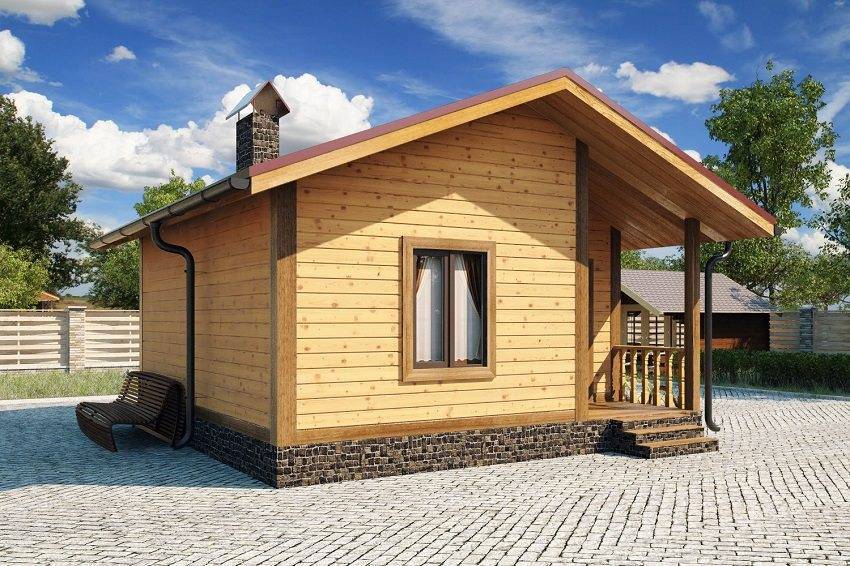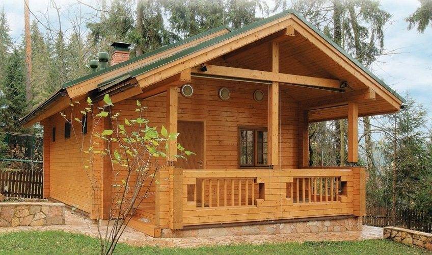 Одноэтажная баня из профилированного бруса с крытой террасойИсточник stopdacha.ru