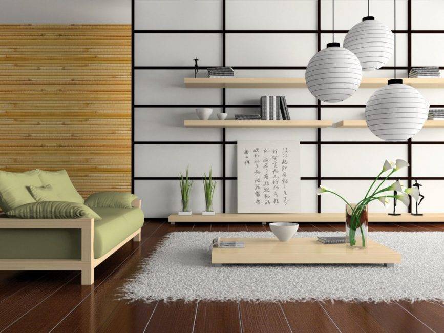 Воссоздать японский интерьер помогут обои с рисунками бамбука, сакуры или иероглифов