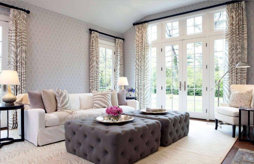 Теперь вы знаете, какие обои лучше выбрать для зала, и осталось подобрать текстильные элементы к такому оформлению стен. Давайте кратко ознакомимся с принципами подбора штор и занавесок.