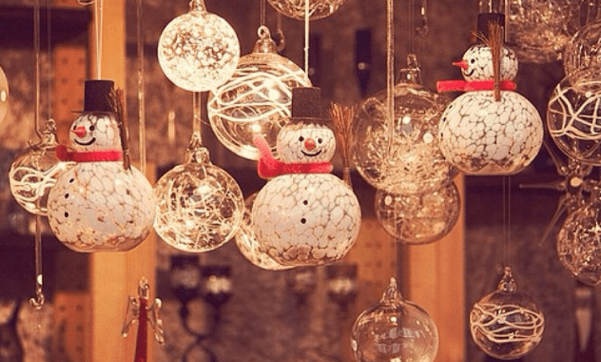 Внутри прозрачных новогодних шаров делают композиции из мелких предметов, предварительно вынув крепление с петлей. Затем его устанавливают на место, а шарик используют по назначению.