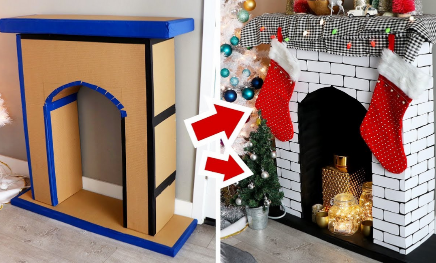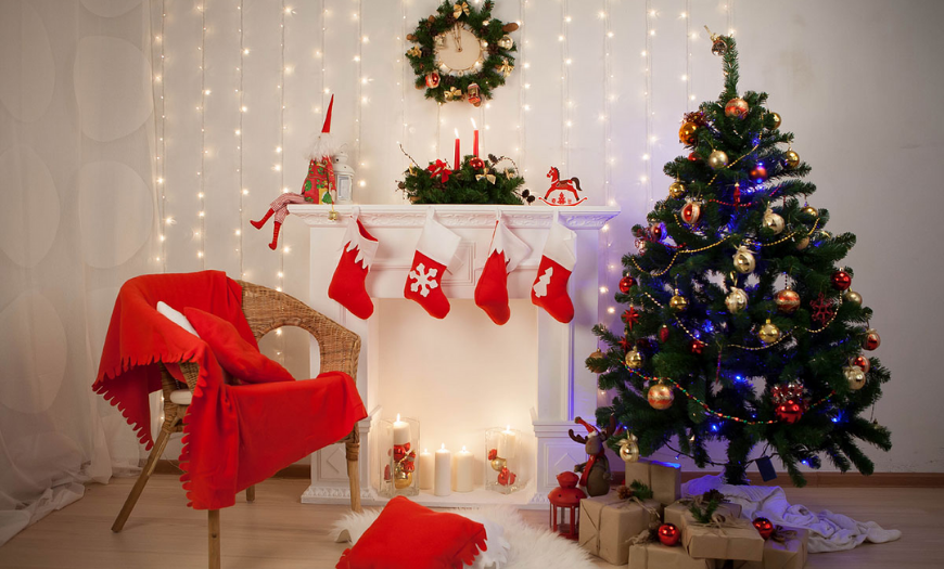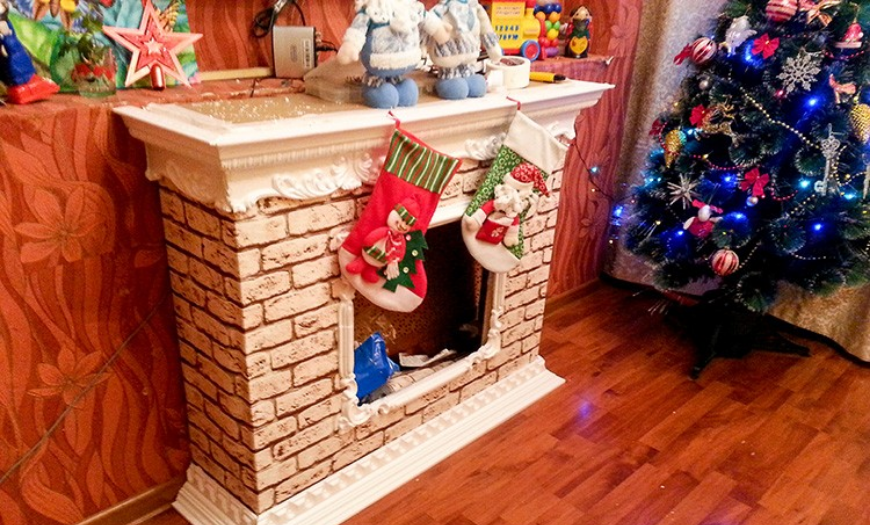 Эта традиция пришла с Запада. Украсить стену в комнате можно, создав декорацию на Новый год, имитирующую камин, если такового не имеется. Для этого: