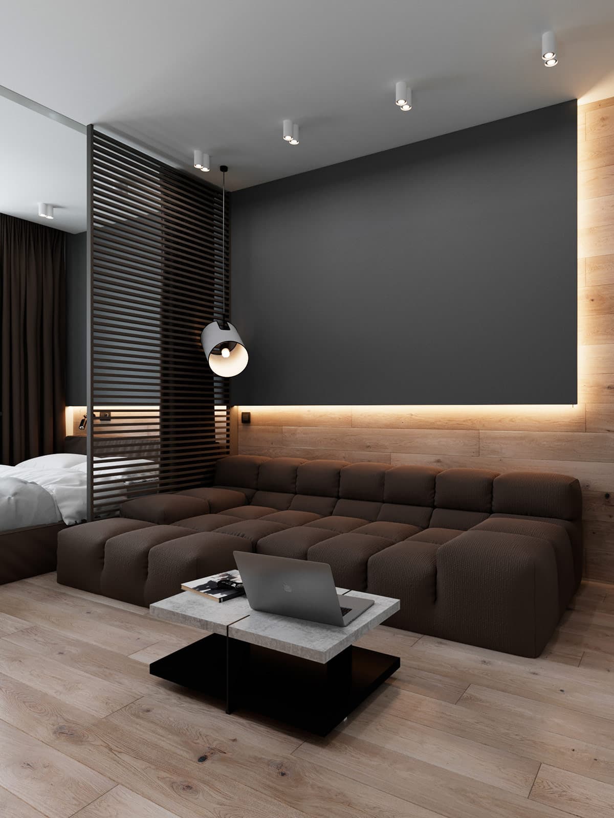 В святилище спальни мы можем выделить несколько ключевых тенденций, которыми руководствуются современные дизайнеры на сезон 2022: во-первых, небольшие городские помещения требуют умных конструкций (в виде скрытых или передвижных платформ для кроватей , хранилищ или складных элементов мебели), а также, в результате платформа кровати становится прекрасным местом для хранения вещей.