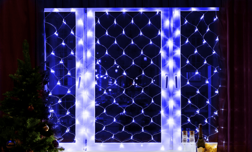 Праздничный декор может быть везде: красиво смотрятся диванные подушки в новогодней стилистике, аналогичный материал используют для украшения стульев и скатерти к рождественскому столу. На шторах или за тюлем можно закрепить всевозможные сетки с интересным мерцанием огоньков, режим которых устанавливается пультом.