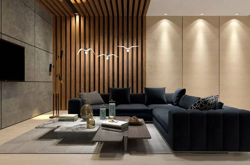 В больших гостиных оформление баффелями используют как акцентную стену, зонирующую перегородку или как элемент, корректирующий размеры и форму комнаты. Ознакомившись с примерами реечных декоров, можно понять, насколько они меняют интерьер.