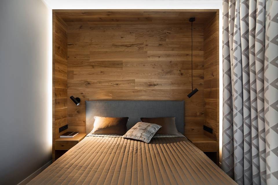 Сочетание деревянных панелей с окрашенными стенами