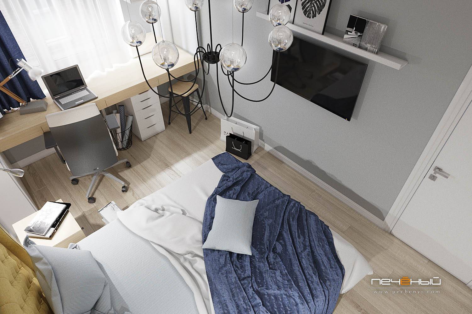 Успешным выходом из положения станет конструкция «чердак». В нижней части сооружения находится письменный стол, а в верхней – кровать.