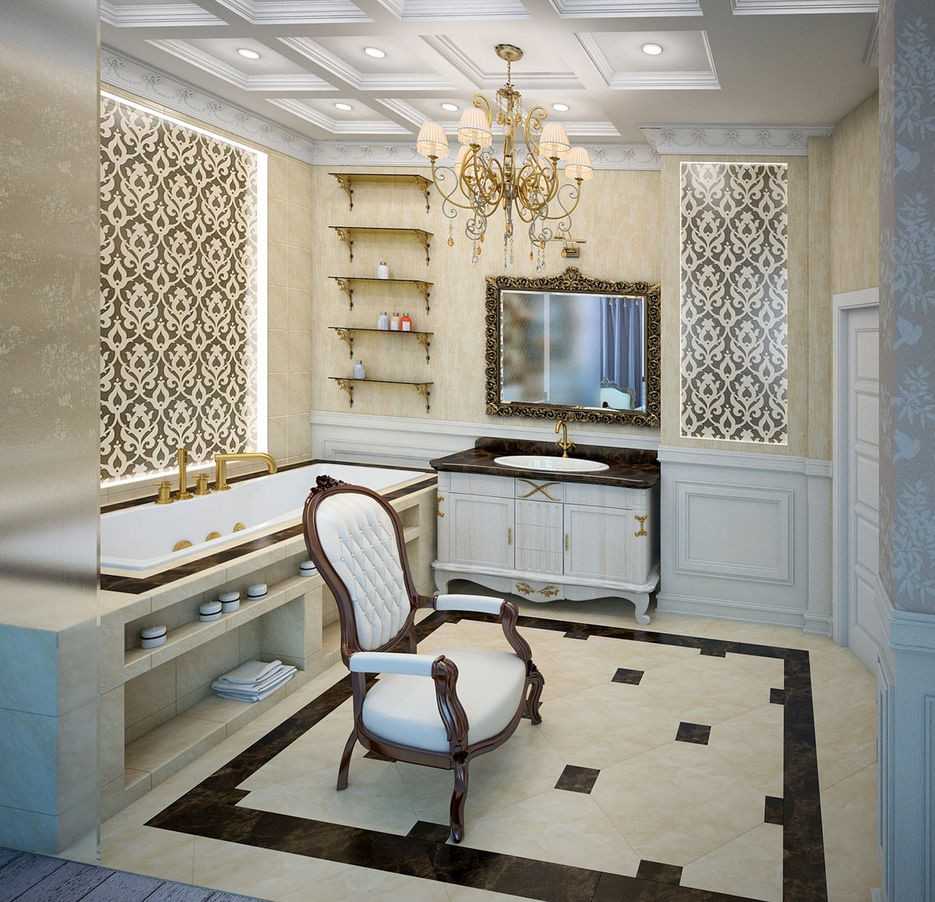 Несмотря на конкретные требования к классическому стилю, дизайнерских проектов существует масса. Специалисты рекомендуют заранее продумать цветовую палитру, отделочные материалы, присмотреть сантехнику, мебель и декор.
