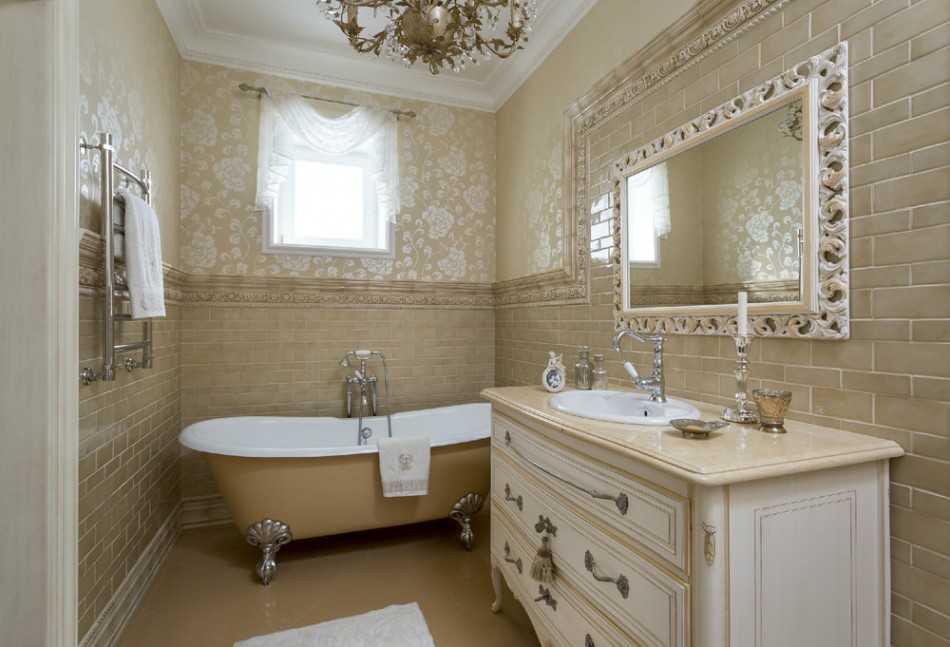 То, какие именно приёмы отделки лучше использовать при оформлении ванной в классическом стиле, зависит от ряда факторов: