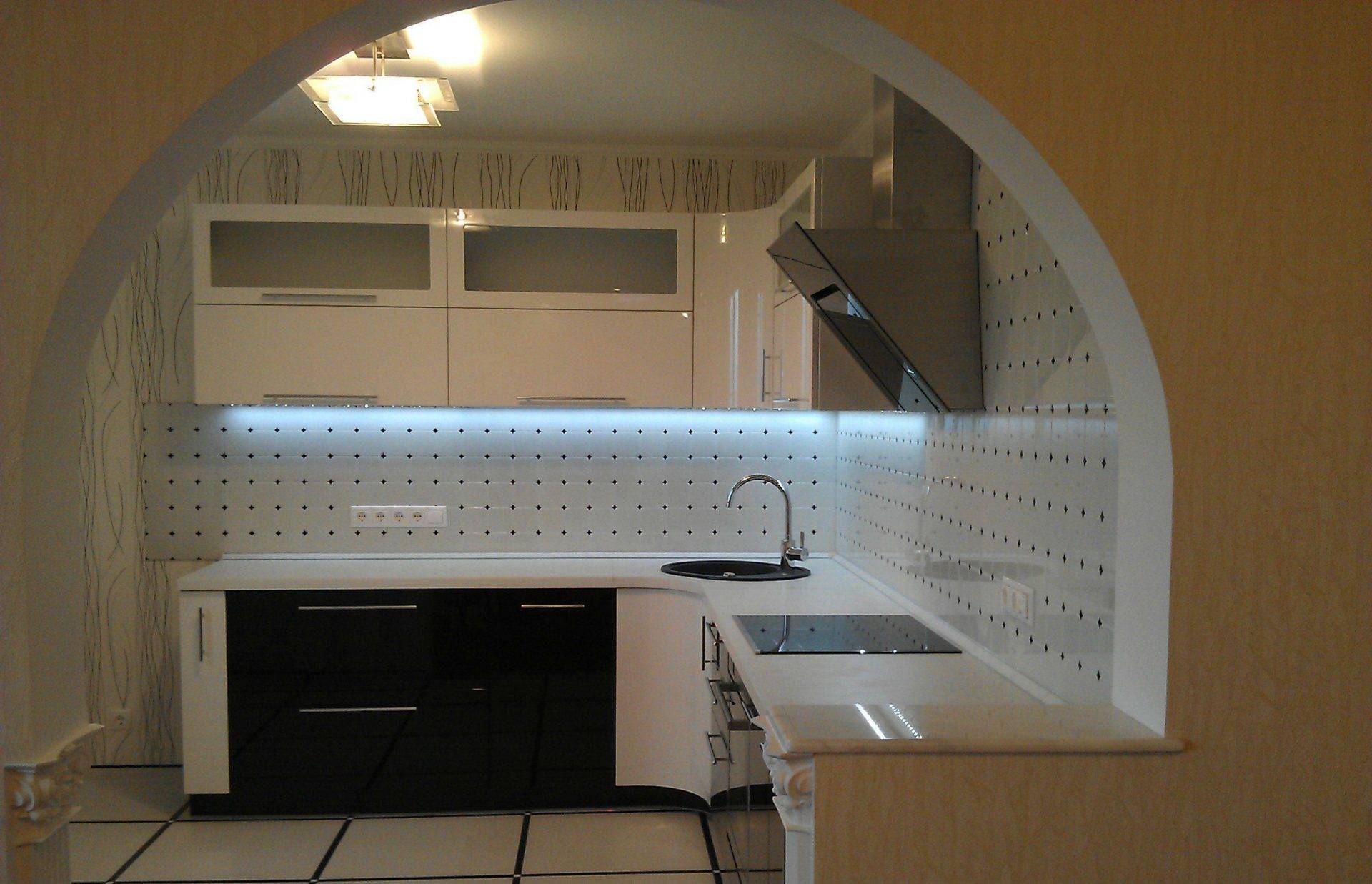 Арки в интерьере малометражной кухни должны создавать иллюзию объемного пространства, обилия воздуха и света.