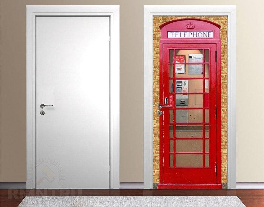 Как вам такой необычный вариант – дверь, с помощью фотообоев превратившаяся в телефонную будку?