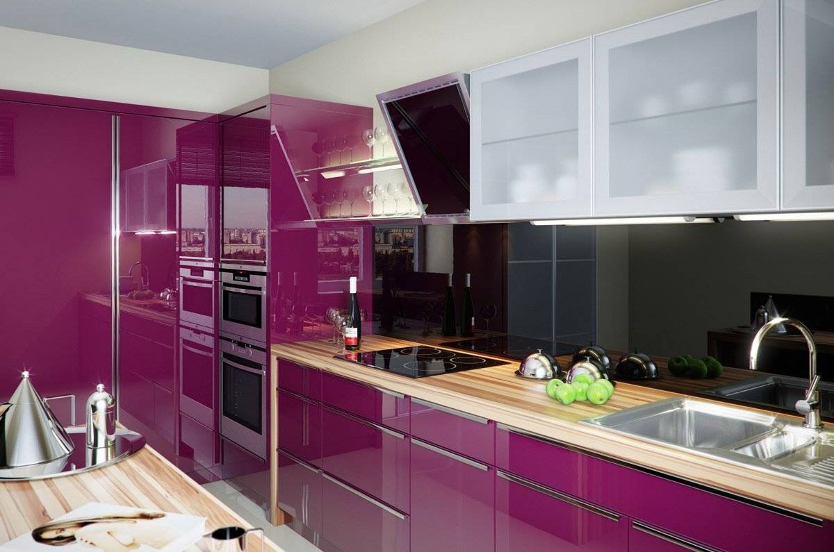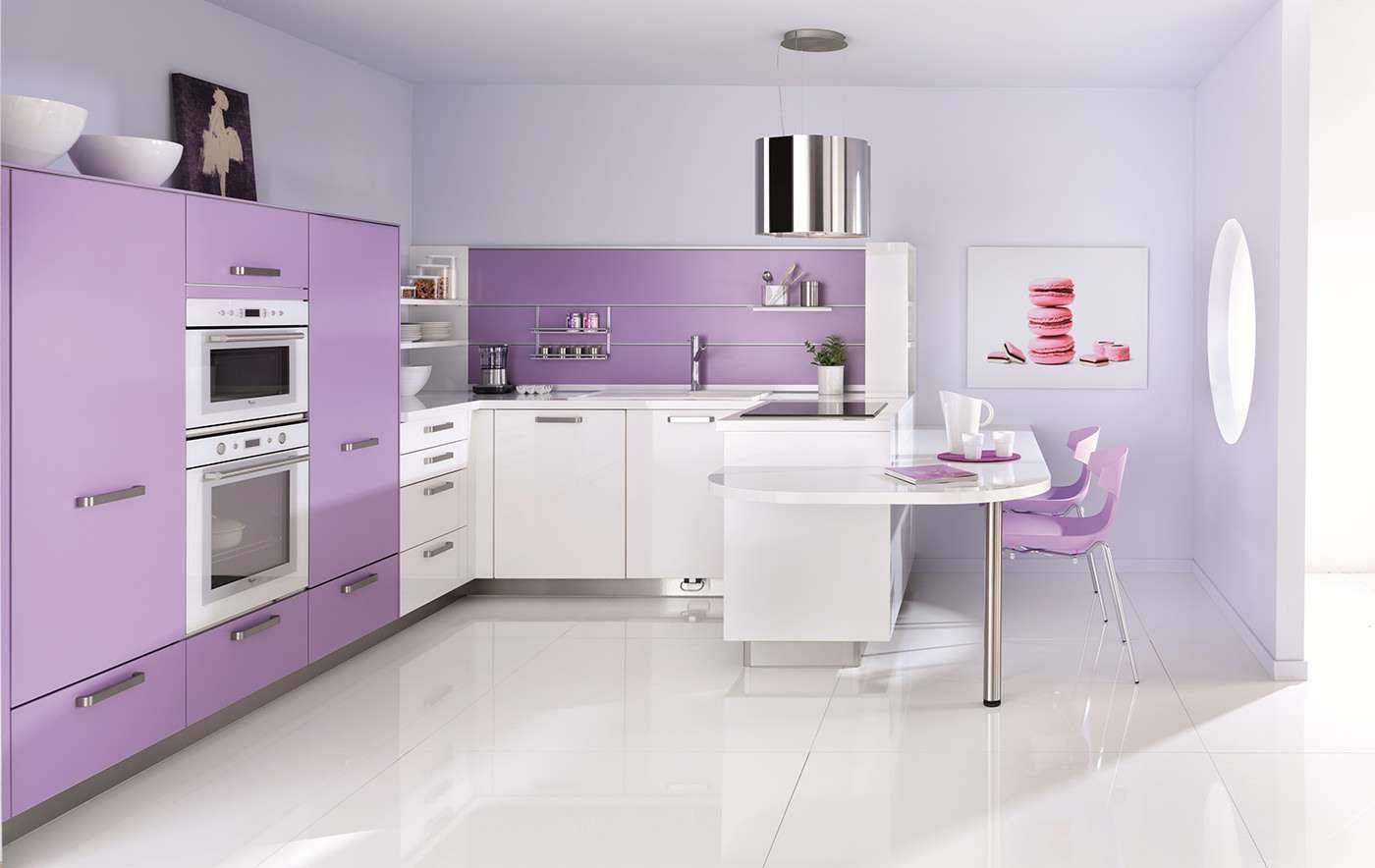 Дизайн кухни с разными оттенками фиолетового