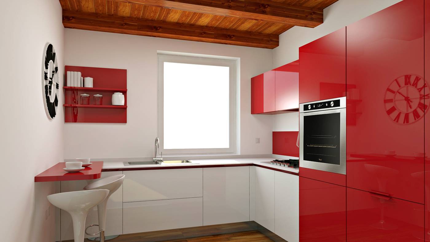Бело-амарантовый кухонный гарнитур