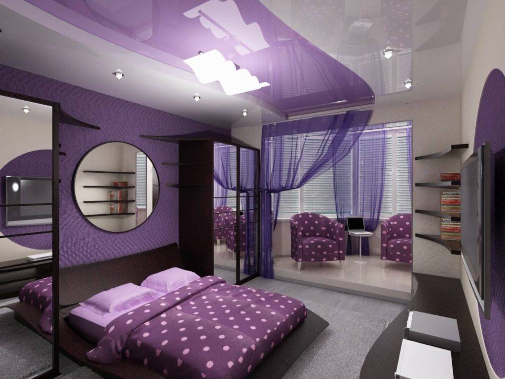 - Не рекомендуется использовать фиолетовый цвет одновременно и на полу, и на потолке.