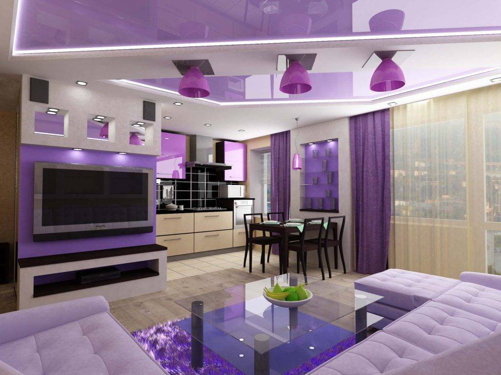 Кухня-гостиная в лиловых тонах