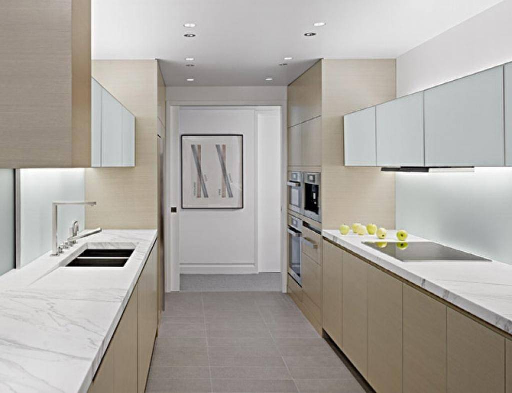 Светлые оттенки зрительно расширяют границы пространства, и придают помещению спокойный и комфортный внешний вид. В качестве ярких элементов применяется текстиль, посуда, осветительные приборы и различные кухонные аксессуары.