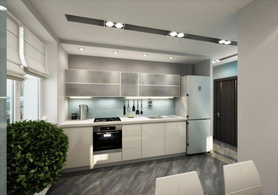 - Светильники в самой гостиной и вдоль рабочей кухонной поверхности должны располагаться так, чтобы не возникали блики и помехи для обозрения.