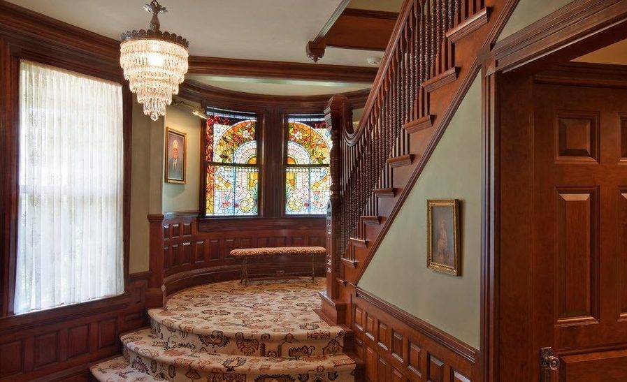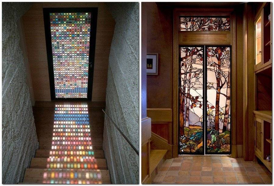 - витраж сам по себе является вычурным декором, поэтому мудровать с какими-то дополнительными элементами, предметами не нужно.