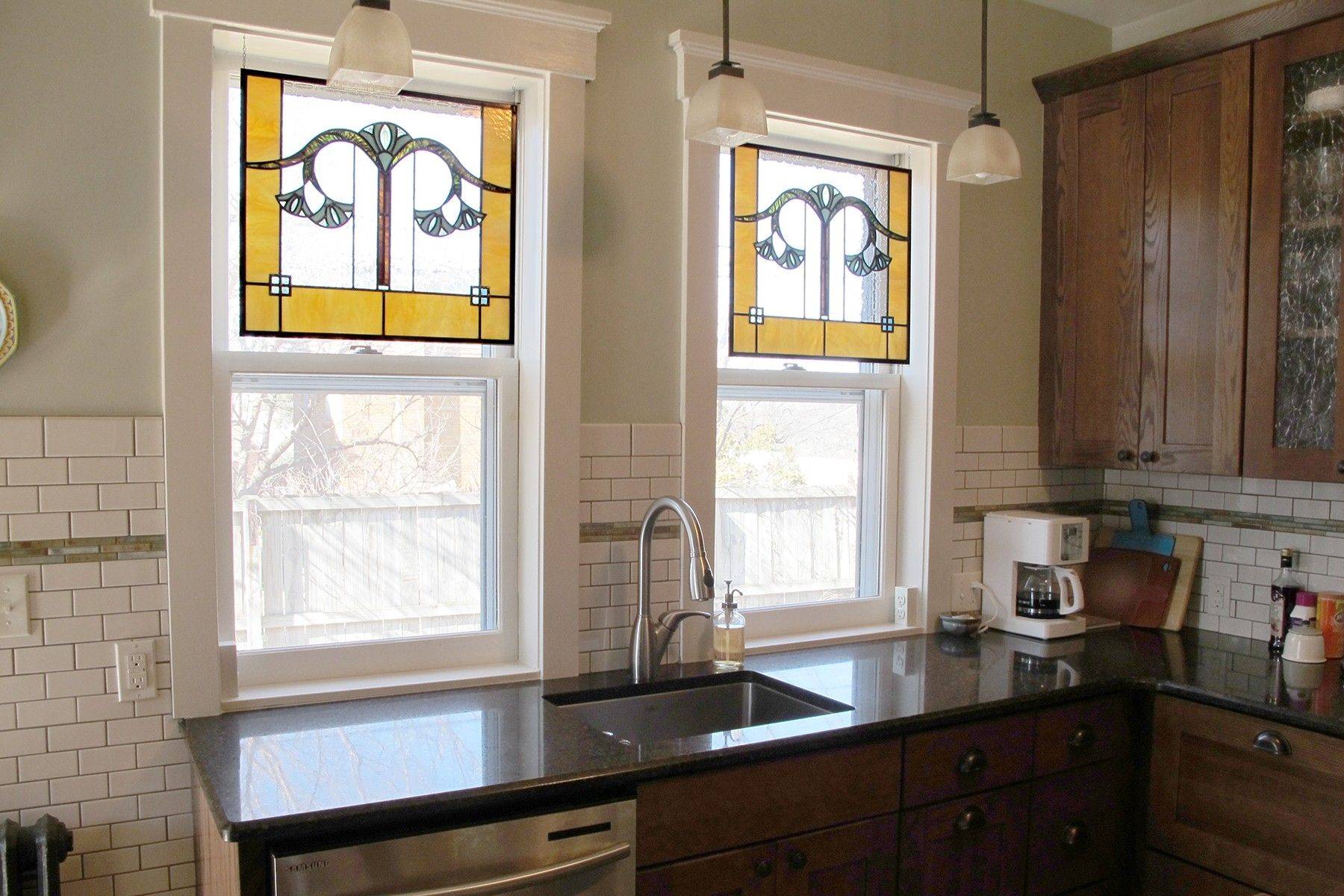 Кухня. Ни одна хозяйка не откажется от атмосферы праздника, создаваемой ярким витражным декором с растительными или геометрическими мотивами. Вариантов использования масса: окна, двери, фасады мебели, кухонный фартук.