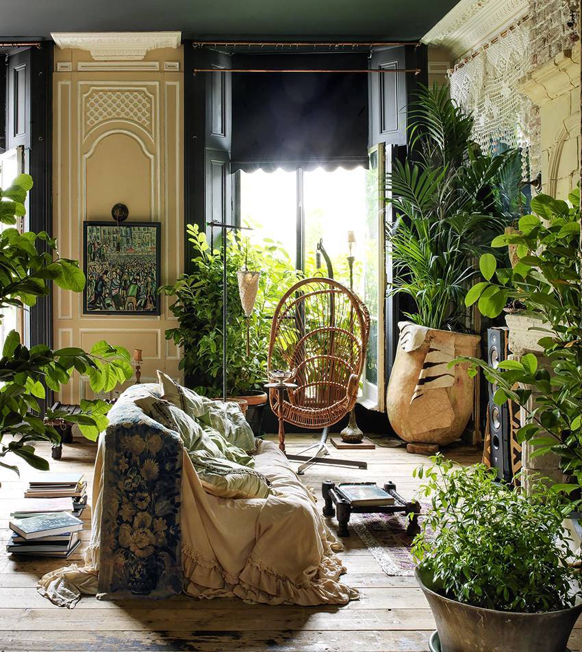 Для экологического бохо характерна натуральность. Не только в отделке помещения, но и во всем его обустройстве: