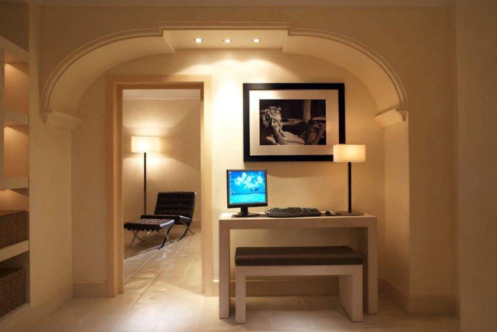 Но если вам хочется установить арку слишком сильно, то можно разместить её внутри комнаты. Например, выделить ей туалетный столик или после дверного проема, сделав зонирование помещения.