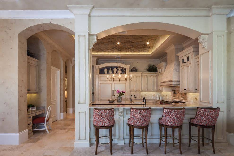 При декорировании арочных сооружений чаще всего используют такие материалы, как: камень, кирпич, гипсокартон и дерево. Также дополнительно арку можно дополнить разными вариациями декора. Такие элементы делают акцент на определенных деталях, а также позволяют изменить размеры прохода, скрыть различные недочеты. Декорирование лепниной, ковкой и резьбой смотрится довольно красиво, в связи с чем их часто используют чтобы конструкция смотрелась еще более эффектно.