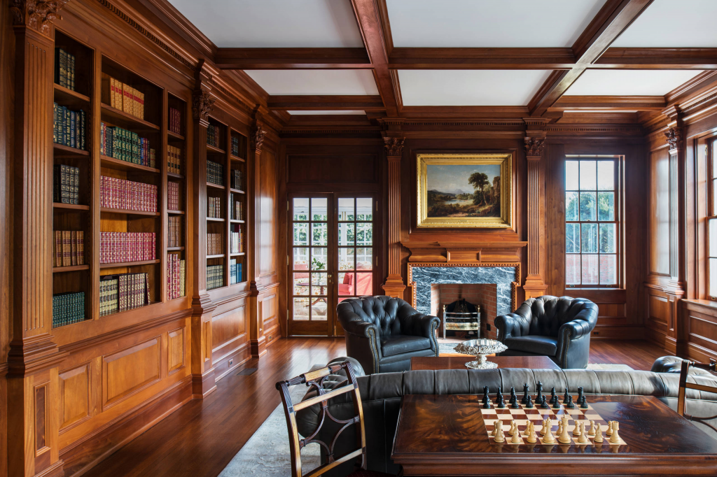 Оформление библиотеки пилястрами идеально подойдет для классического интерьера