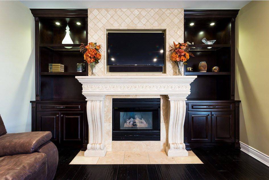 Совет! В темной комнате установка вертикальной белой полуколонны обеспечит осветление, а темные архитектурные элементы являются обязательным атрибутом готических интерьеров. Декорировать пилястрами можно не только фасады и стены – они являются отличным украшением порталов каминов и дверных проемов.