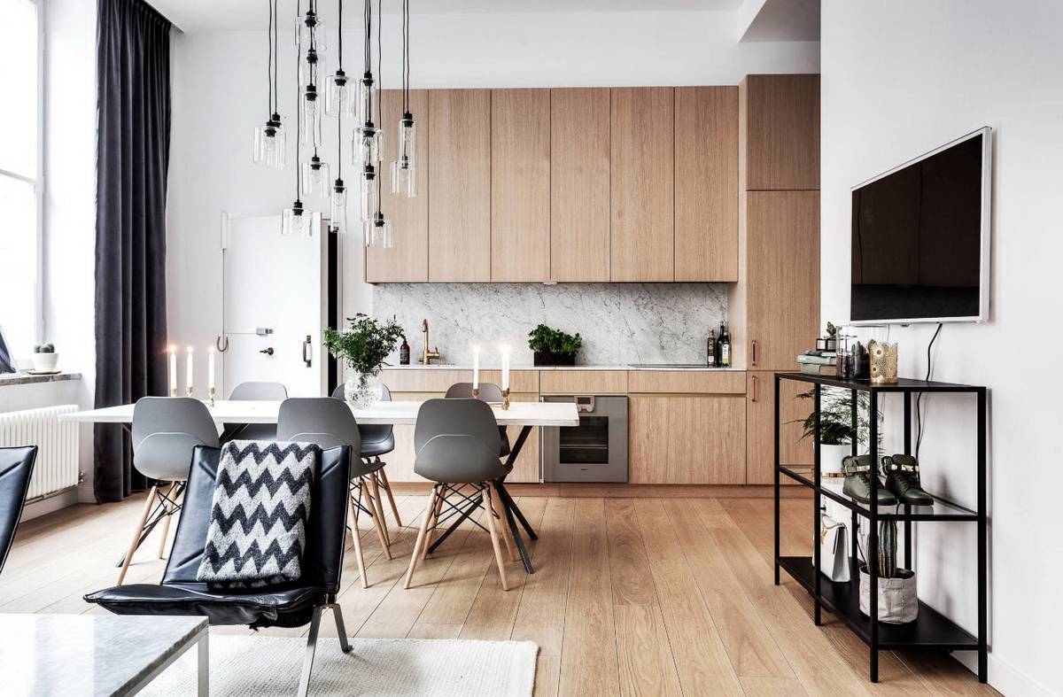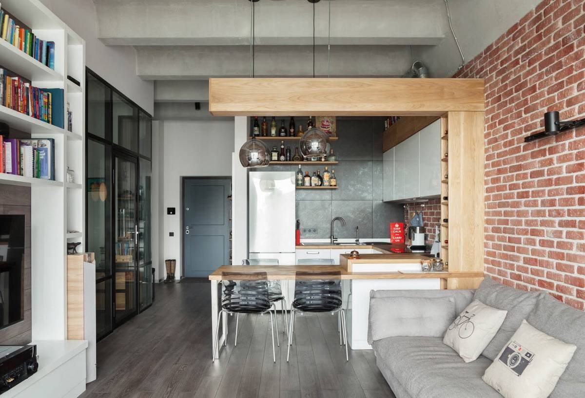 Удачное совмещение кухни с гостиной в небольшой квартире