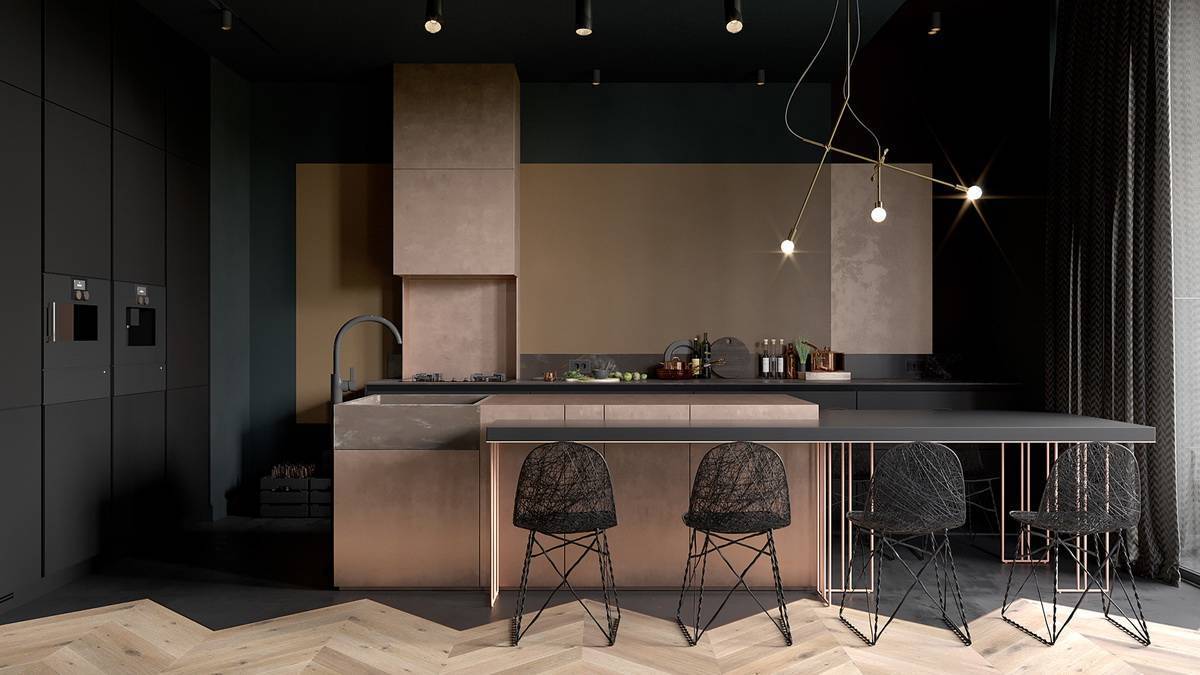 Сочетание контрастов на модной кухне — металла, дерева или меди?