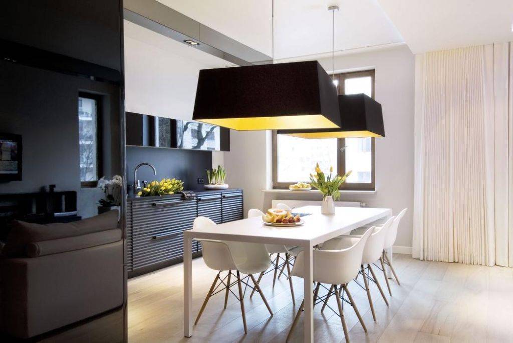 - Столовая — над столом есть место для оригинальных внешних устройств или настенного светильника с теплым приглушенным светом. Они создадут особую атмосферу для романтического ужина или встреч с друзьями.
