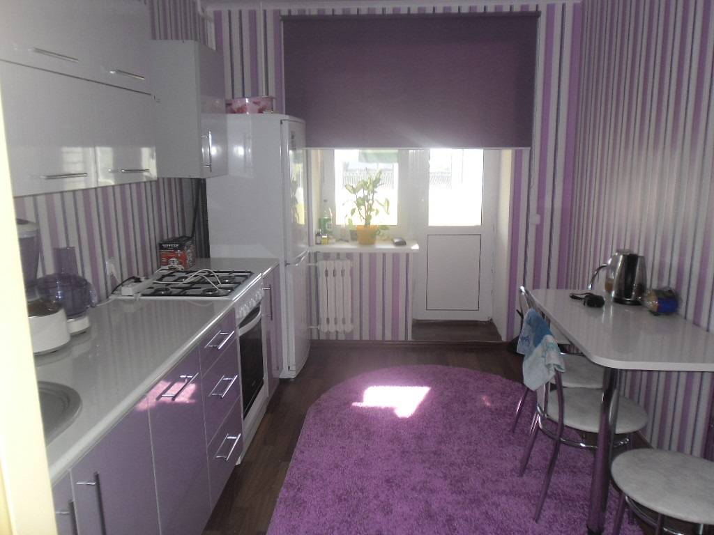 Светлая фиолетовая кухня создаст эффект большой комнаты.