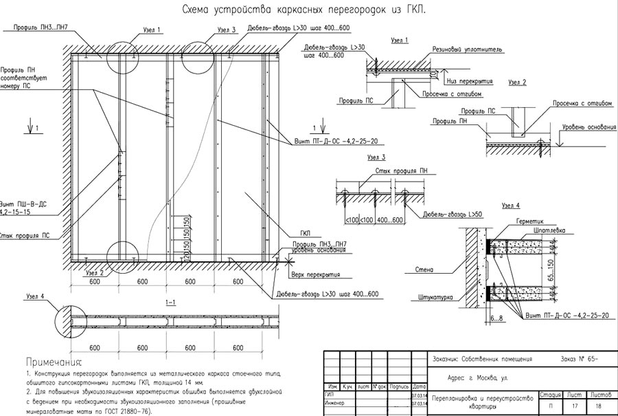 Использование подобных материалов для шумоизоляции перегородок из гипсокартона позволяет добиться положительного результата. Совместное применение акустических листов, термоизоляции гипсокартона и специальных звуконепроницаемых мембран способно полностью устранить возникшую проблему. Сделанная по всем правилам перегородка будет обладать изоляционными характеристиками монолитной бетонной плиты, а то и превышать их. Сделать каркасную конструкцию своими руками не так уж и сложно. Первым этапом ее возведения служит создание принципиального плана будущей перегородки из гипсокартона.