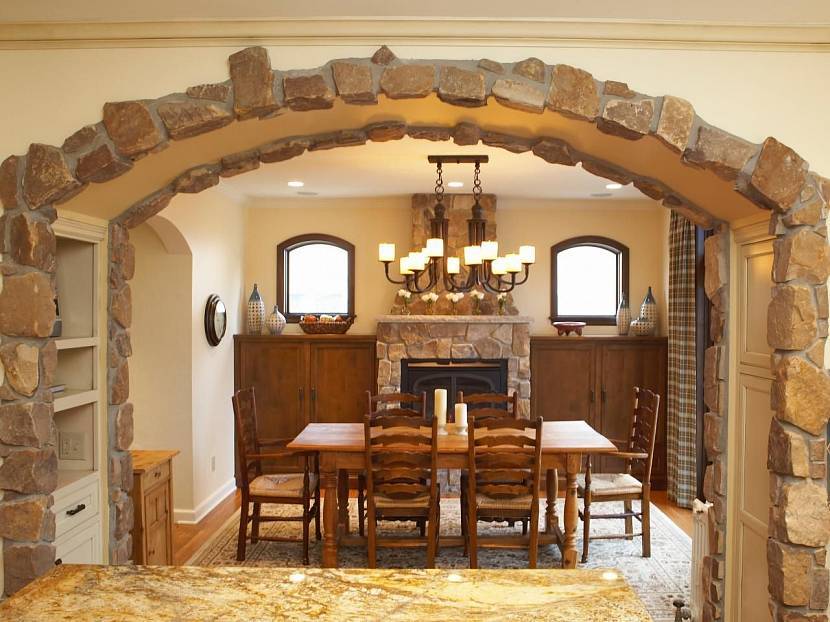 Арка в столовую, отделанная камнемИсточник www.picnorth.com/