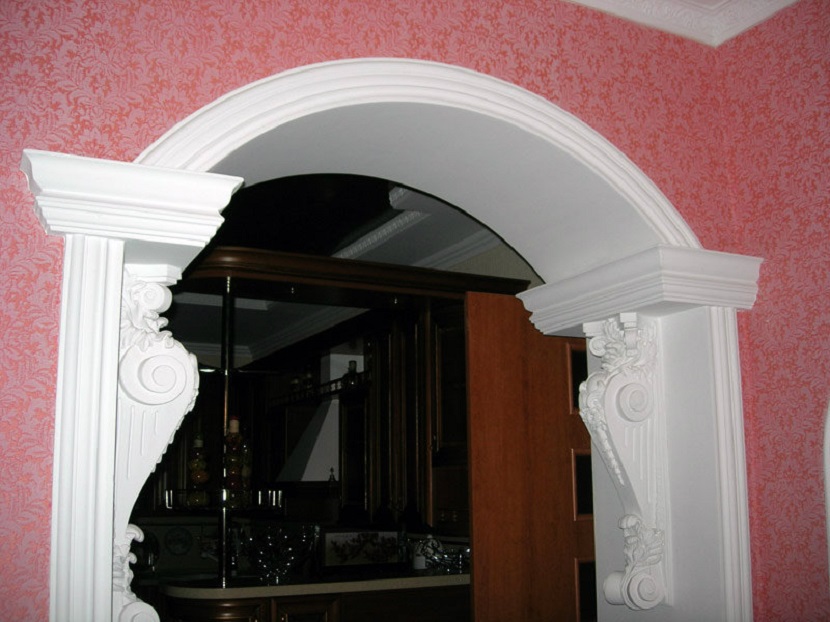 межкомнатные арки из гипса представляют собой отдельные изогнутые конструкции, оформленные колоннами по краям. При монтаже этих элементов у стен с помощью специального клея вам останется зашпаклевать соединяющую зону или замазать смесью из гипса. После всех этих манипуляций арку перекрашивают в выбранный цвет и обрабатывают лаком для защиты;