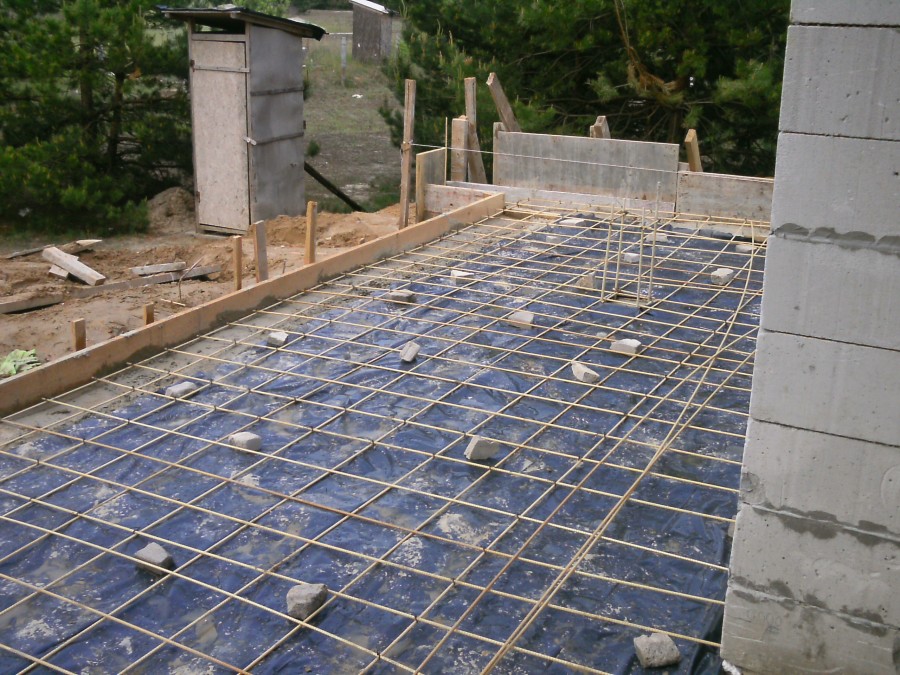- армирующую сетку надобно поместить не на основу, а в толщу бетона. Посему, последняя должна покоиться на каменных либо цементных подпорках;