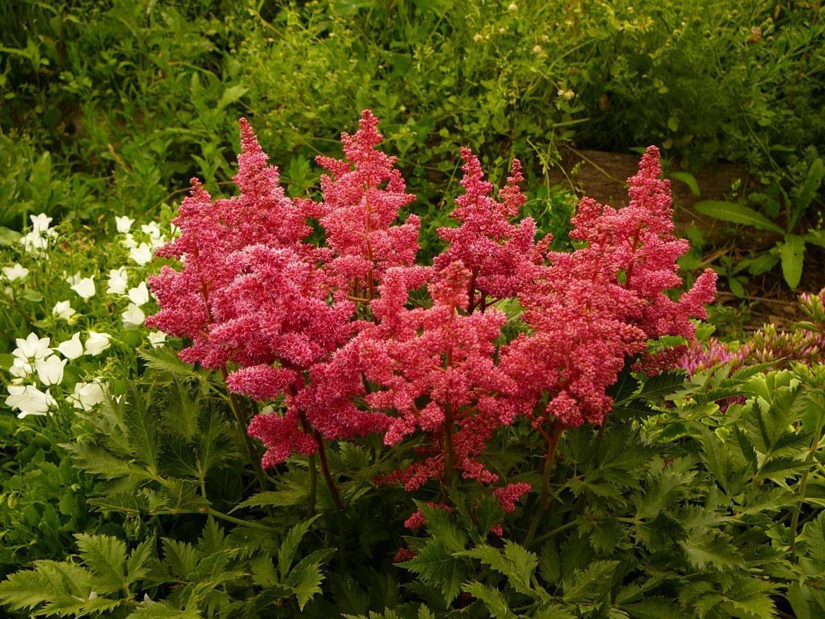 Для каждого многолетника можно подобрать в качестве соседа хотя бы один сорт астильбы, повышающий его декоративность. Особенно привлекательно эти растения смотрятся вместе с древесными растениями, даже с кустарниками. Здесь надо только выбрать не вид астильбы (китайская, японская либо Арендса), а сорт. Тогда растение подойдет по внешнему виду так, чтобы в итоге выглядеть максимально декоративно. Дикой астильбе очень вредно яркое солнце и сухой грунт.