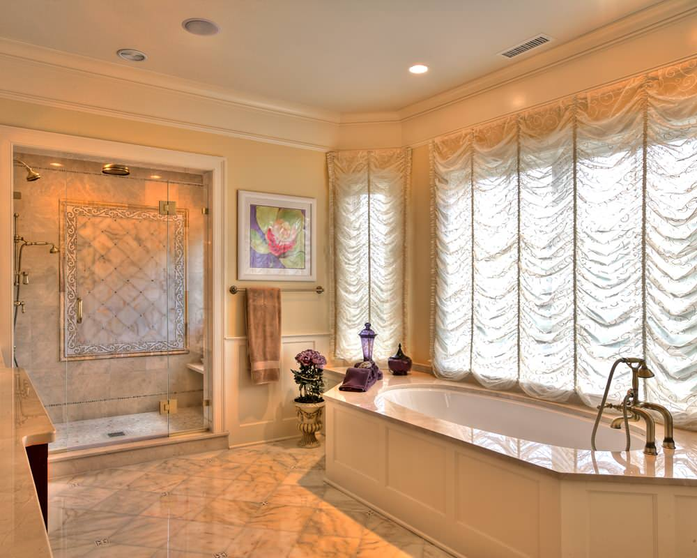 Английские шторы придадут элегантности и строгости просторной ванной комнате