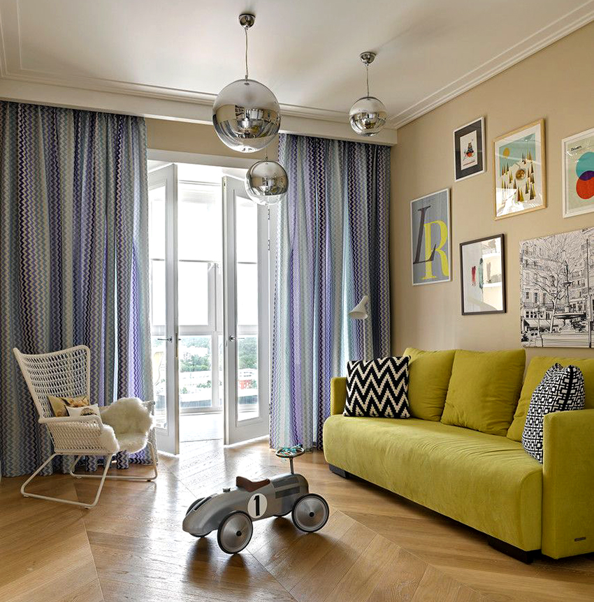Дизайн багетной планки подбирают не только под общую стилистику интерьера, но и под шторы