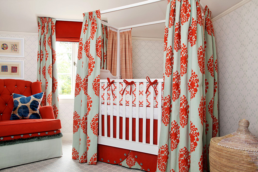 Если кроватка стоит в солнечной части комнаты, можно выбрать более плотный материал: хлопок, сатин, лен. Некоторые родители предпочитают оборудовать кроватку своего малыша двумя балдахинами: прозрачного и легкого для жаркого времени года, более плотного для холодов.