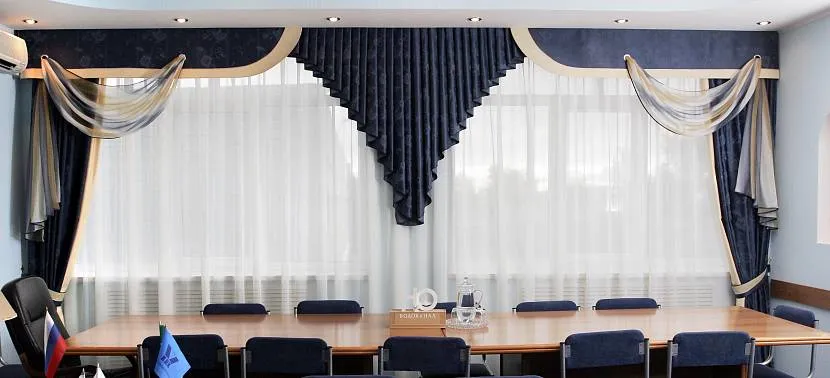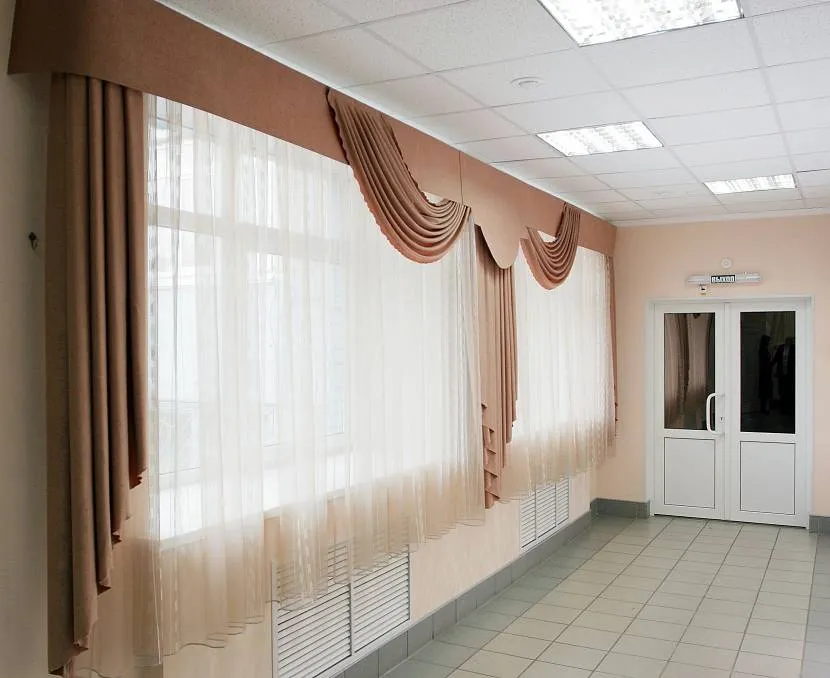 Оформление окон в приемном залеИсточник shtory-podolsk.ru