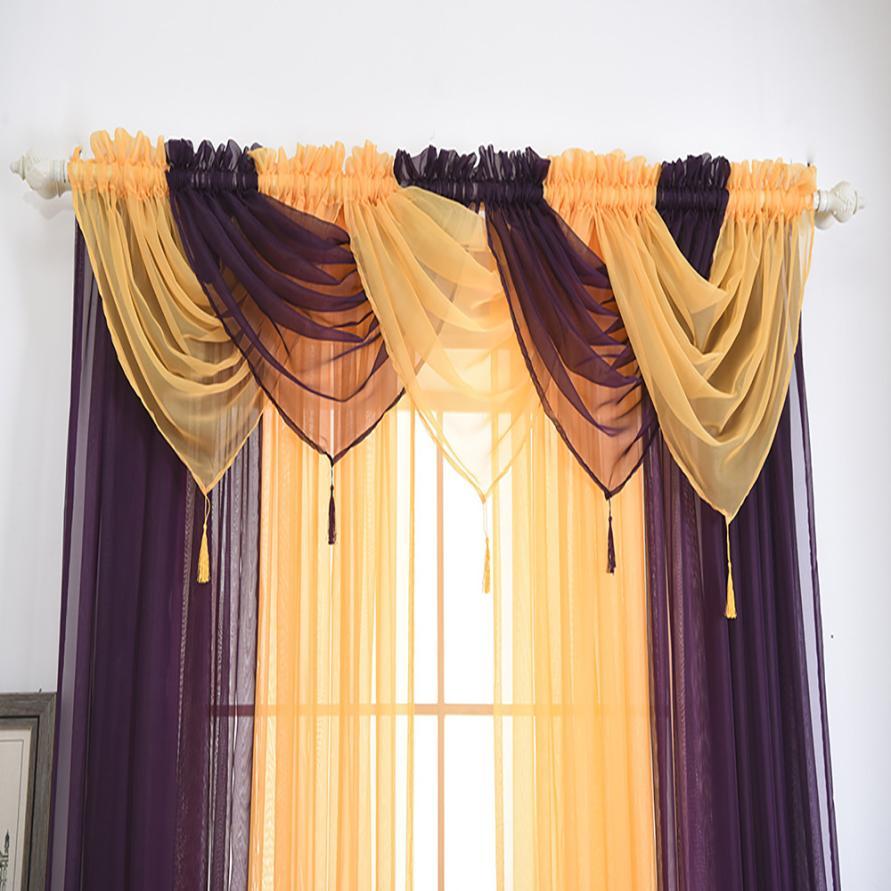 - Двухцветные ламбрекены используются сегодня намного чаще, чем монотонные. Сыграйте на контрастах. Синий тюль и канареечный шелк, зеленые и белые сваги из органзы, серо-голубые и золотые перекиды подарят нарядную атмосферу гостиной.