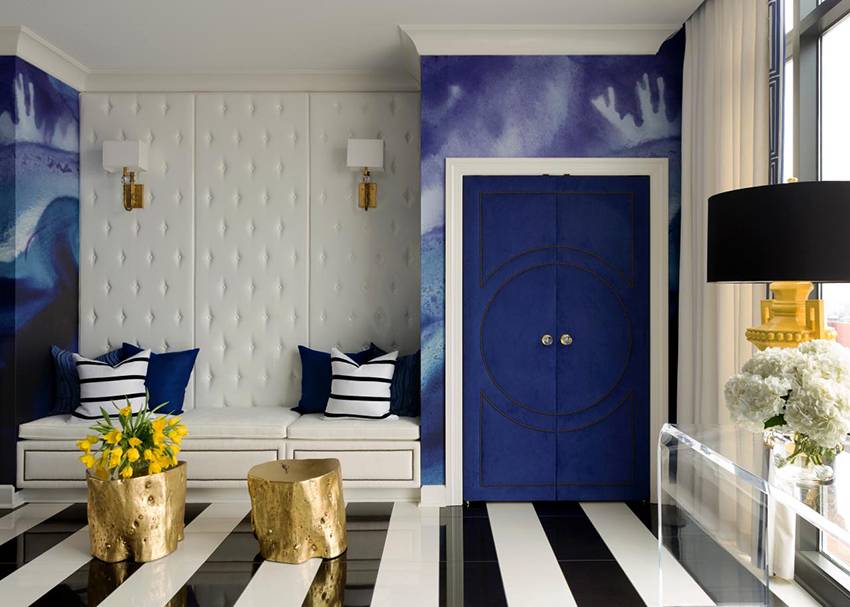 Она может выступать диванчиком для отдыха, сочетаться с ящиками или полками для обуви, исчезать с глаз долой в нише, или, наоборот, привлекать внимание, выступая главным декоративным элементом. Именно последняя роль удается банкетке лучше всего