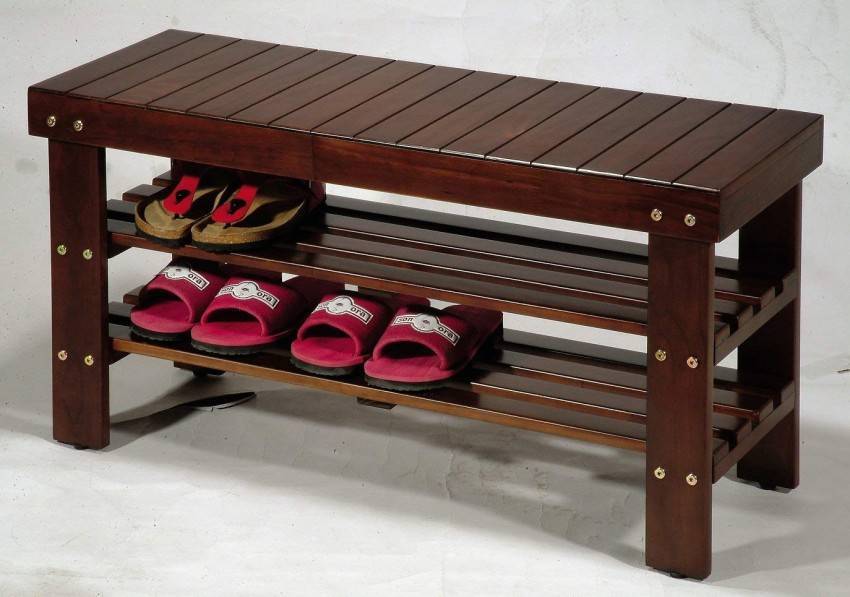 - Скамеечки с полочками, на которые можно поставить обувь;