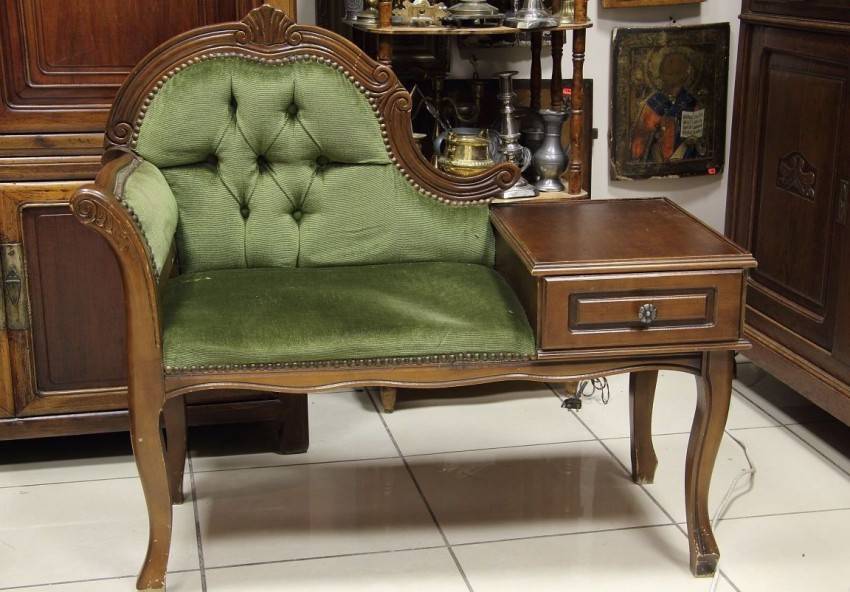 - Скамеечки, с необычной спинкой, выполненной в стиле барокко или модерн;