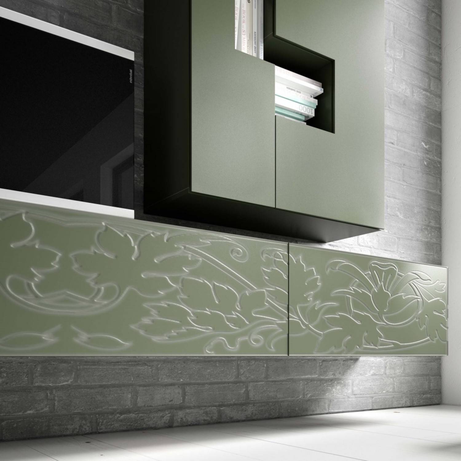 Барельеф – отличная «ширма» для проводки, а можно зайти еще дальше – использовать выступающие части изображения в качестве полок или подставок для комнатных растений.