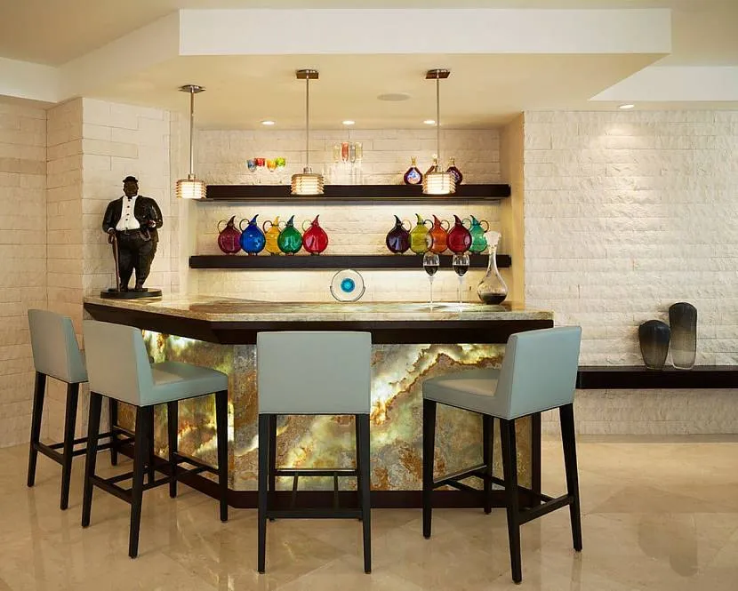 Барная стойка в гостиной имеет ряд неоспоримых преимуществ: