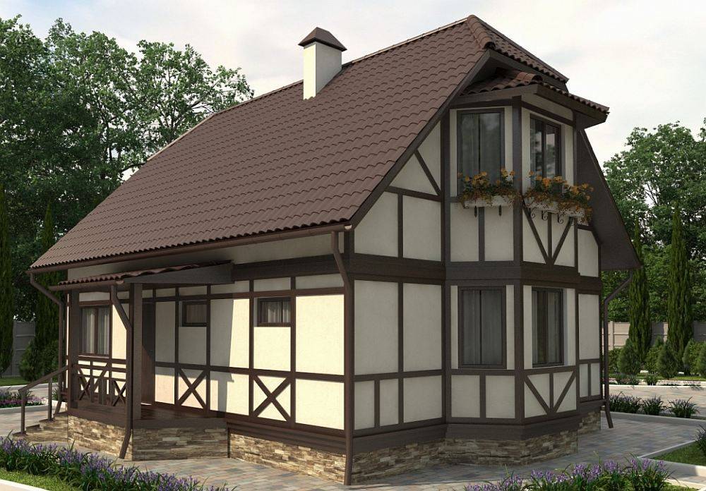 Отделка фахверк – это своеобразная сетка из деревянных балок, нанесенная на облицовку дома контрастного цвета. Такое решение имеет ряд достоинств: