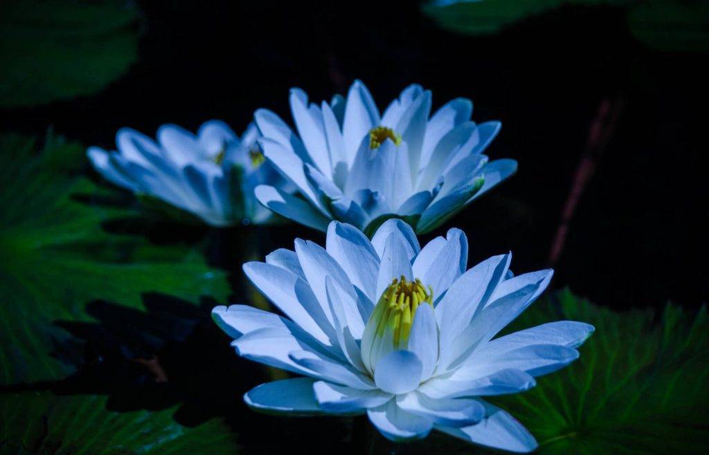 Листья содержат флавоноиды, щавелевую кислоту, способствующую усвоению кальция, и дубильные вещества. Нимфея предпочитает яркое солнце, тень мешает фотосинтезу крупных листьев. Бутон тоже реагирует на свет: распускается с восходом, а на закате прячется под водой. Чтобы кувшинка хорошо укоренилась и росла, ей необходима стоячая вода или совсем небольшое течение.